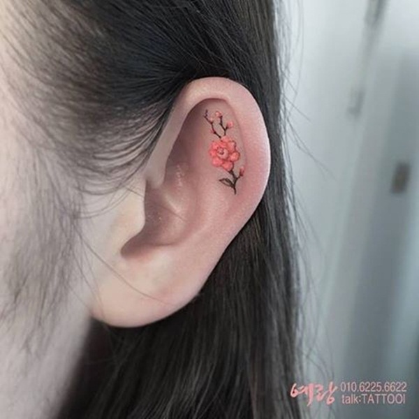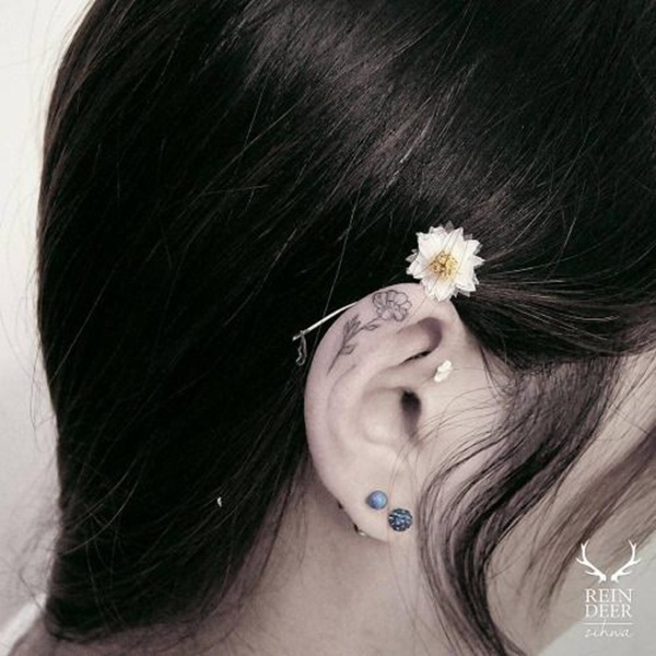 ดอกไม้เล็กๆ สีสาว รอยสักบนใบหู