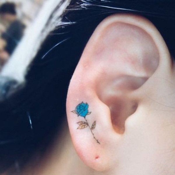 รอยสักกุหลายสีฟ้าเล็กๆ บนหู