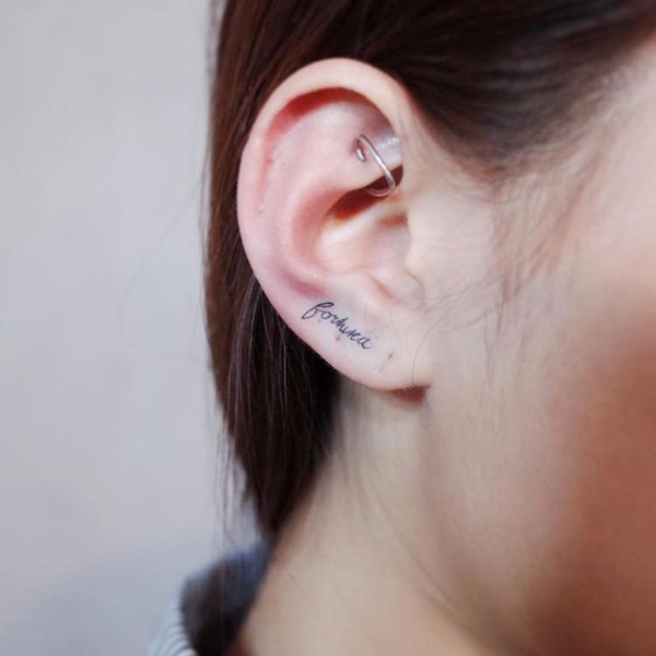 สวยละมุน รอยสักเล็กๆ บนใบหูสำหรับผู้หญิง